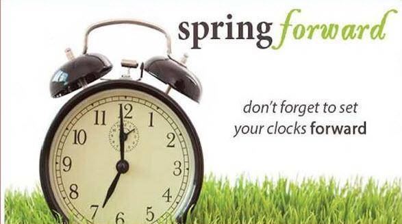 - March 7 – Daylight savings… set clocks forward tonight!